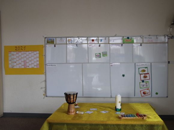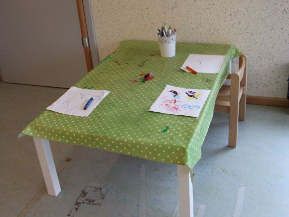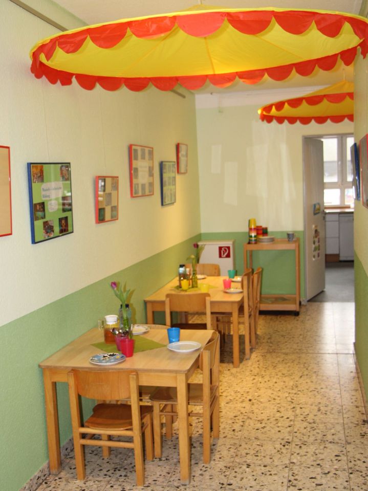 Die älteren Kinder aus der Igel- und Froschgruppe können sich gerne (außerhalb der Corona- Einschränkungen) im Flur zum selbstbestimmten Frühstück verabreden.